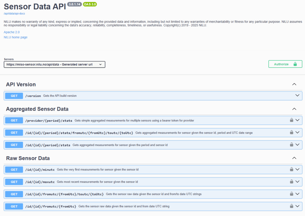 MISO Sensor Data API (for retrieving Realtime-, historical- and aggregated-/statistical data)